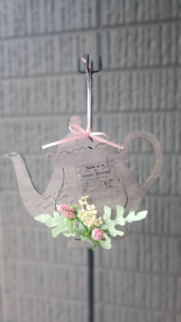 ティーポット壁掛けアレンジとハーバリウムです。