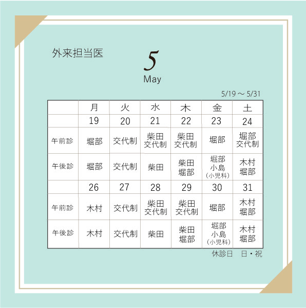 2025年5月19日~31日 外来診察Dr.のお知らせ